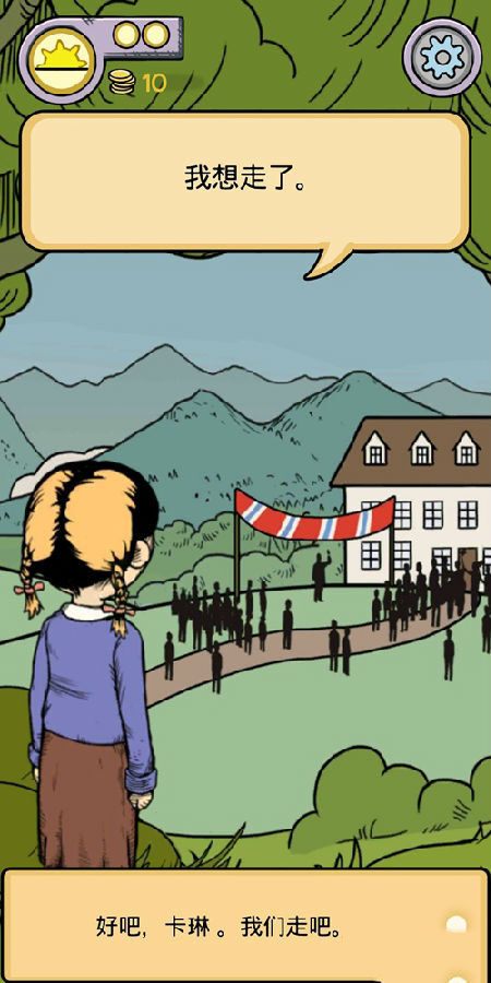 8.最后的结局就是我带着小孩一起离开了这个伤心的地方,走之前在树林边缘远远地看了莅临巡视的挪威国王一眼。当然也有好结局和坏结局,大家可以在游戏中查看。但是,结局其实是开放性的,但意味深长的是有些事情得不到改变那将永远是循环,而这些伤痛的承受者却是懵懂的下一代。