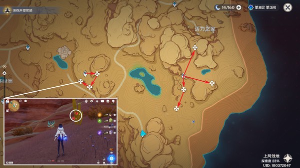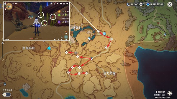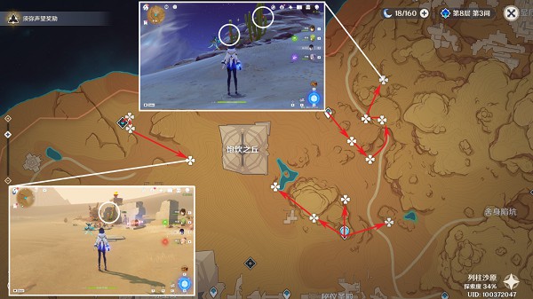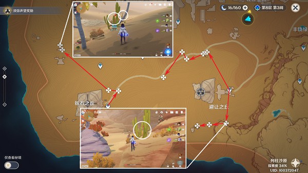 4,沙漠南部具体在避让之丘和砾石之丘的位置,这里是路线比较长,不过好在在这里是可以收集到16个。