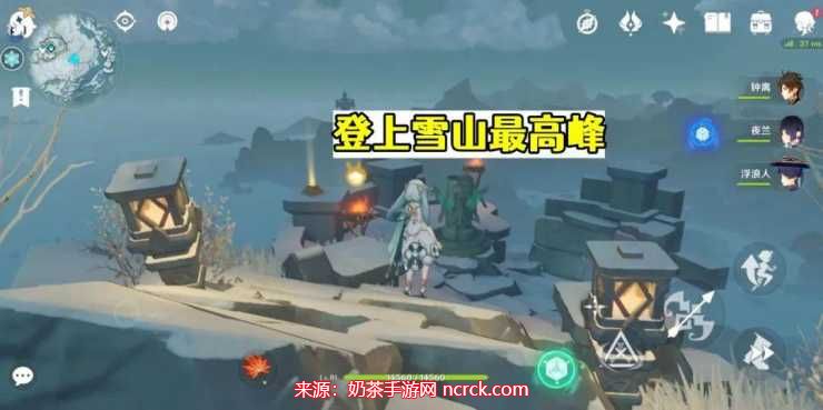 传送到冰水本旁边的锚点,爬上身后的山,激活山顶上的风元素方碑。然后通过风场飞到对面山上,并最终爬到山顶,即可解锁“一览众山小”成就。这座山是雪山区域的最高峰,在飞行时避免使用萝莉体型的角色,以免无法到达加速圈。