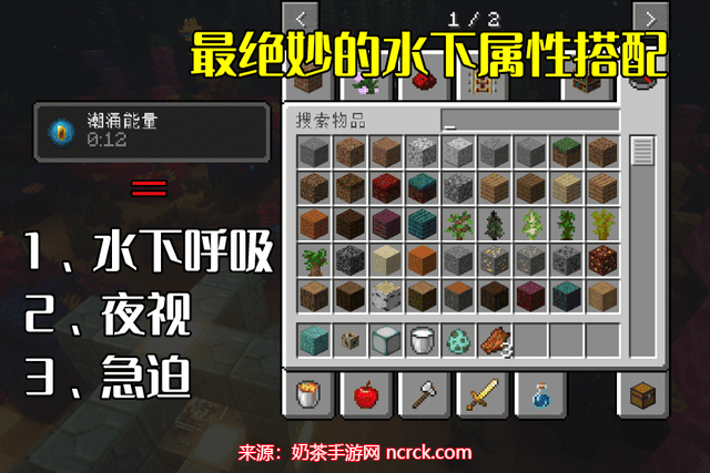 海洋之心在《我的世界》中的唯一作用就是合成“潮涌核心”。潮涌核心能赋予玩家一种名为“潮涌能量”的范围性状态属性,包括水下呼吸、夜视以及急迫效果。可以说这是游戏中最绝妙的水下效果搭配之一。