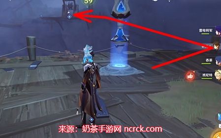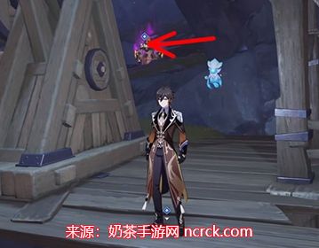 接下来,与NPC【志琼】对话。在志琼附近的右手边位置,您将发现第二个流明石原矿。具体位置请参考下方箭头指示。
