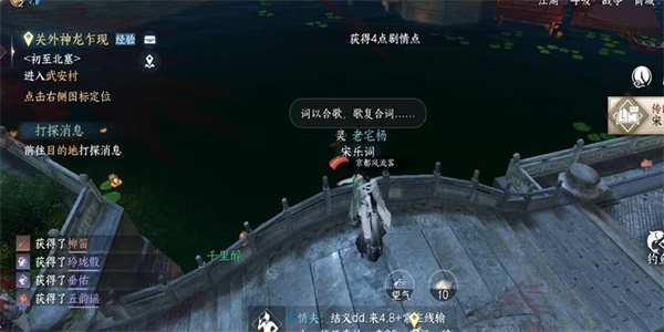 4、最终来到桥上,把宋乐词写的曲子唱出来即可取得此物品。
