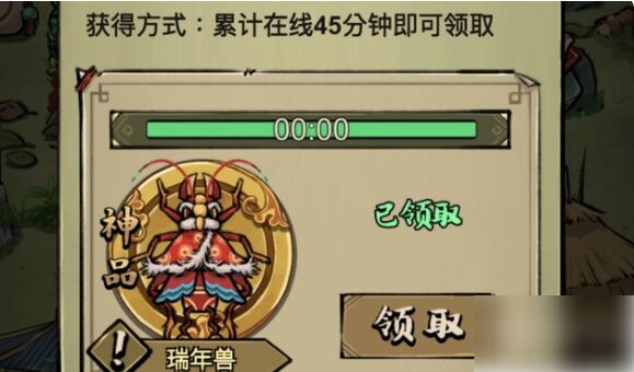 3、到达必定的在线时刻。最新版本是45分钟后取得瑞年兽蟋蟀,后续或许会有其他内容。
