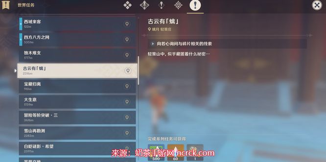 1、首先需要完成魔神任务第一章第二幕【辞行久远之躯】以及世界任务【古云有螭】任务。