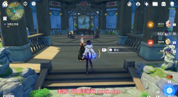 1、玩家们首先需要传送到轻策庄,找到若心之后与她进行对话。