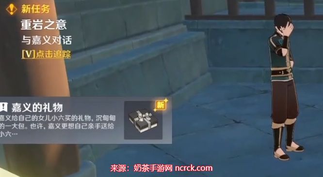5、选择后结束对话,可获得任务道具嘉义的礼物,同步触发重岩之意任务。