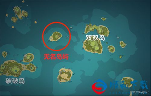 第一截:在布丁岛北部的一处岛屿中。靠近并交互即可。标记图