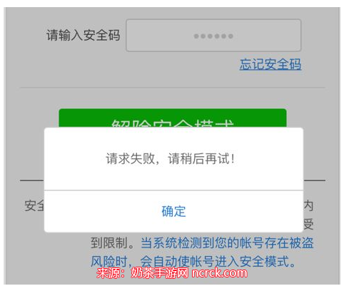 6.确认在游戏关闭时是否高危,若是的话,重置密码,然后再次打开游戏。如果不是高危,呵呵,等三天以后再上就会解除了!除此之外,别无他法!