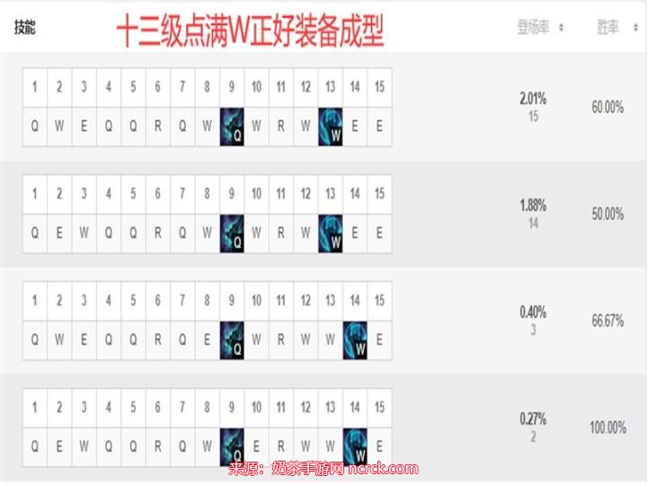 在技能加点上,建议选择主Q和副W的加点路线。尽管黑科技玩法的核心是W技能,但在游戏初期,仍然需要加强主Q以确保线上的强度。副W在13级时点满,因为在此时铁男通常已经完成了救赎和坩埚的装备,副W的强化可以提高护盾的强度,收益比副E更高。