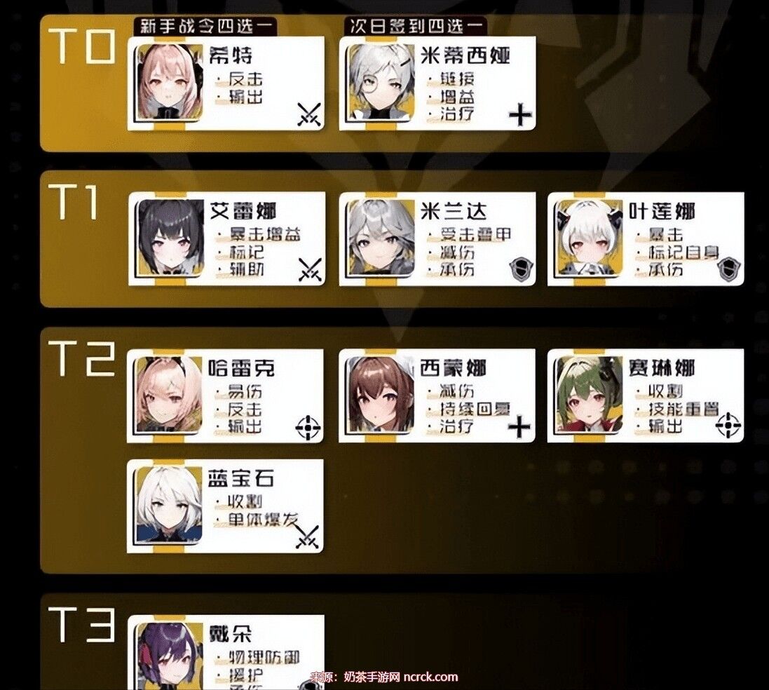 T3级别的逆卫角色相对较弱,包括戴朵等。