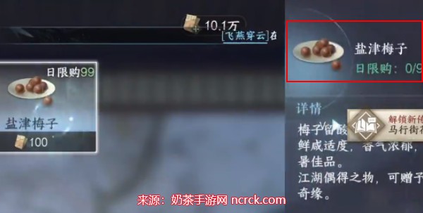 进入神侯府,寻找位于内部石桌上的特定道具——盐津梅子。