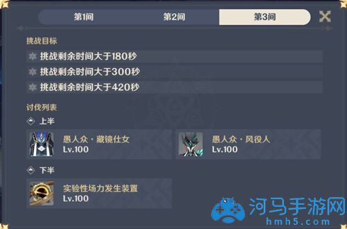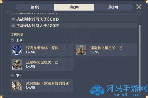 这里推荐带冰属性的角色,只要将其护盾破掉就能够迅速瘫痪,血量100多万,不算高,带神里永冻队还是比较容易通关的;如果无法迅速破掉其护盾,那么他会在一定的时间内落下三枚种子,只要将其一一拔除,也可以使其瘫痪,所以这一间使用冰属性角色是明智的选择。