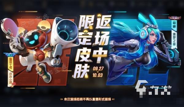 本次游戏的限定返程皮肤分别是鲁班七号的乒乒小将、貂蝉的逐梦之音这两款皮肤。限时返场时间只有7天,从9月27日上线时开始计算。所以喜欢这两个角色的玩家们不要再次错过本次皮肤的返场,而且这次的返场时间有点紧凑,注意返程时间的节点。