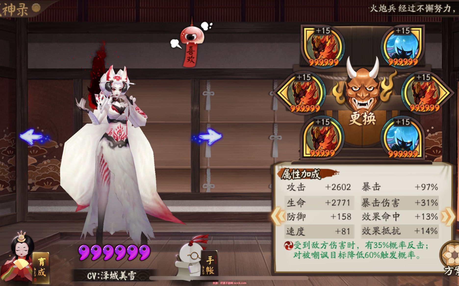 鬼王:阴阳寮地图搜索鬼王,有一定概率可找到R式神三尾狐,挑战获得碎片。