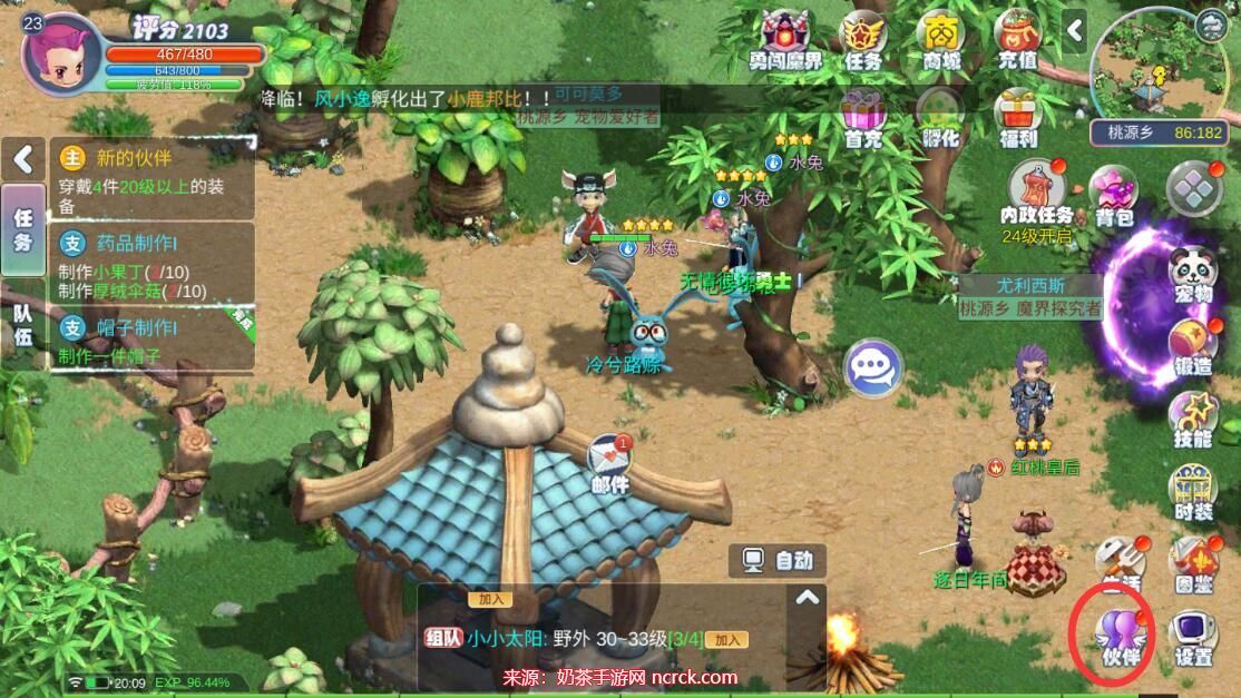 5、进入伙伴界面,查找并点击邮件图标,您的礼包奖励就在那里等待着您。