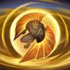第三个技能是“正义冲拳”。加里奥向前猛冲,直至撞到敌方英雄或地形后停止。这个技能对敌人造成90点魔法伤害并将其击飞,最多持续0.75秒。对小兵和野怪的伤害为50%。