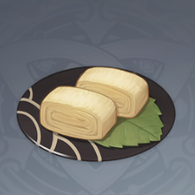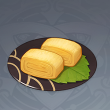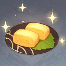 介绍:煎制而成的蛋料理。将搅拌均匀的蛋液先行调味,倒入锅中小火慢煎,卷至一边定型,再次倒入蛋液继续…重复至一定厚度,便可摆盘作为成品。是稻妻地区平凡而又亲切的美味。