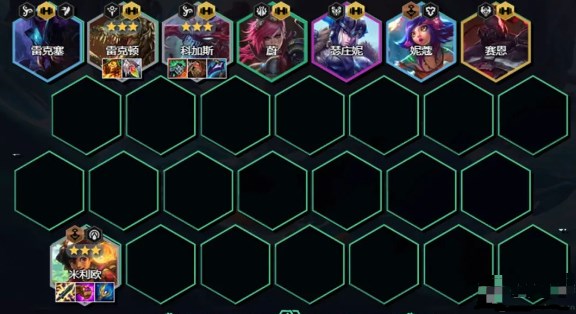1、阵容成员:雷克塞、雷克顿、科加斯、蔚、瑟庄妮、妮蔻、塞恩、米利欧