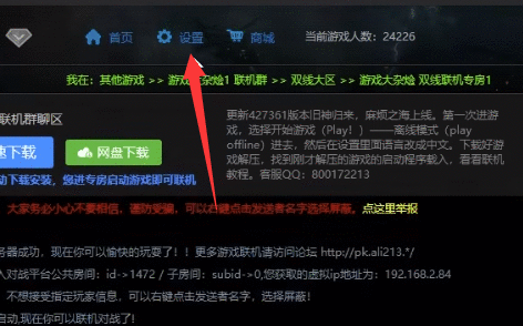 2、打开平台并进入后,随便挑一个游戏进入,然后点击上方“设置”