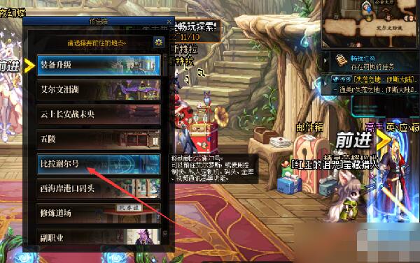 2、完成之后,在赛利亚房间内,前往比拉谢尔号。