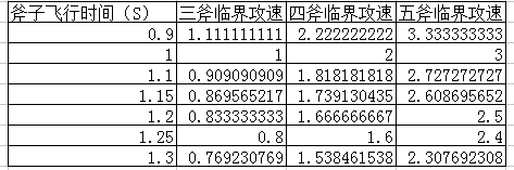 在德莱文扔出斧头到接到斧头的过程中,需要2秒的时间(扔斧头1秒,等斧头1秒)。因此,我们设想德莱文是一个专业的杂技演员,他能够同时控制三把斧头(标记为a、b、c)。这就要求他在1秒的时间内扔出两把斧头,这样的攻击速度为2.0。但实际上,这与事实相反,这个错误在于我们认为德莱文一只手上的斧头从来没有扔出去而是一直在旋转,只是两把斧头在空中来回交替。因此,我们并不能通过攻速为1.0时同时拥有三把斧头来证明我们的推论。