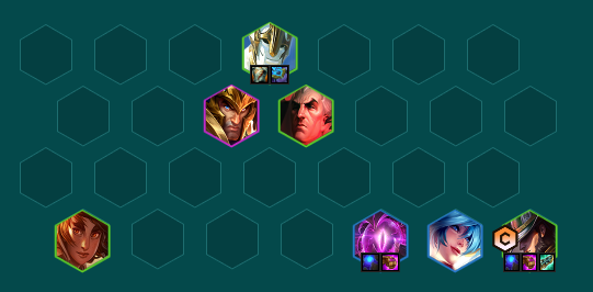 新版娑娜不再缩角,可以双C站娑娜左右,加里奥顶第一排,嘉文四世和斯维因站他后面吃双抗