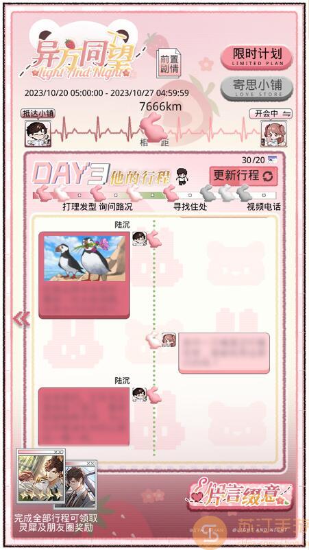 在情侣定制APP中和他共享每日行程,完成全部7天可获得奖励。
