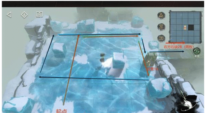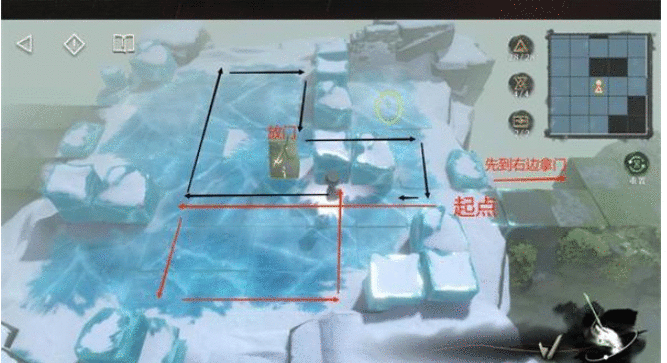 8.图4:到第二冰场,到右边拿完门后,我们的起点直接从右侧开始(去右边没难度,随便走就行)。