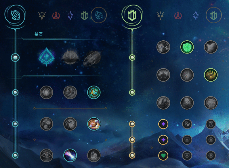 副系选择坚决,生命涌泉配合E的减速为队友提供额外的回复效果,提高线上的回复能力,骸骨镀层提供第一轮爆发的伤害减免,提高线上耐消耗能力。