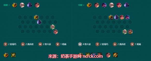 格斗家全部第一排,尼菈站瑟庄妮同边第二排,一是让瑟庄妮帮尼菈顶伤害,二是尽可能多的尼菈打倒敌方后排c位,并且多的触发瑟庄妮被动,快速造成减员。注意尼菈旁边不要放远程,免得被嘉文四世或者黑默丁格控。