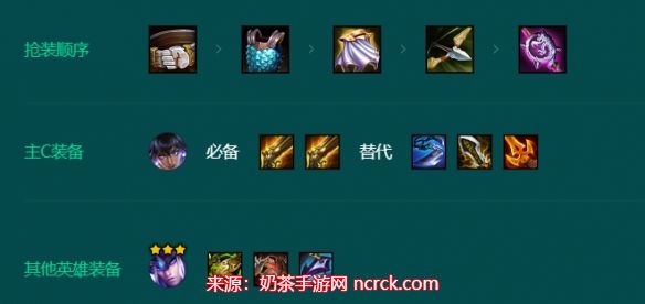 装备优先考虑瑟庄妮的巨龙之爪,棘刺背心和狂徒铠甲,最后在考虑尼菈的疾射火炮。