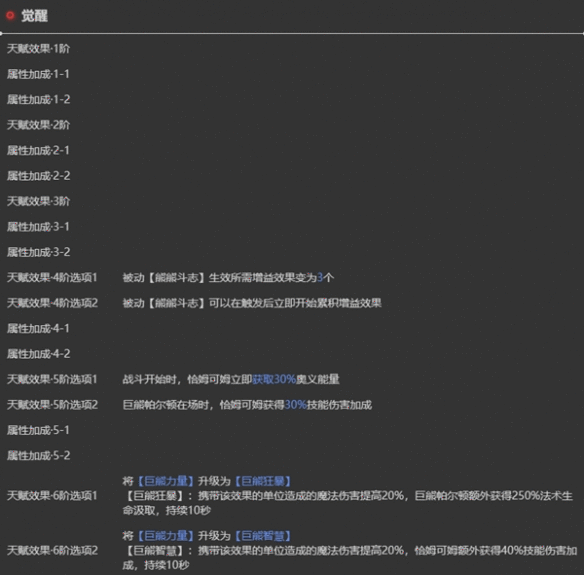 1、每获得5个增益效果,则自身和巨熊均获得“熊熊斗志”,持续时间内无法继续累积增益效果。