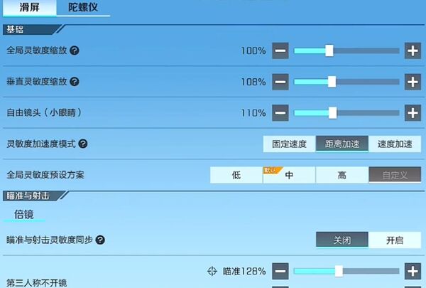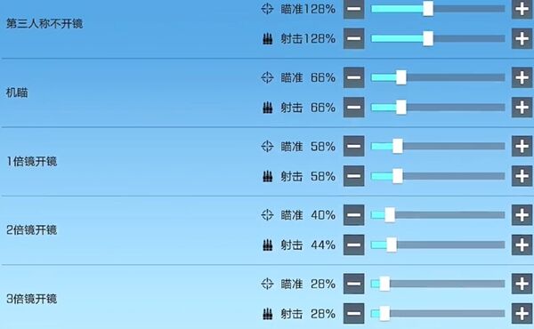 2、第三人称不开镜:瞄准:128%,射击:128%