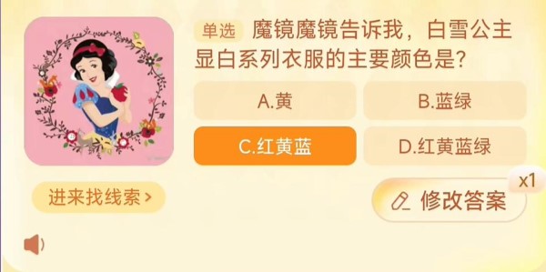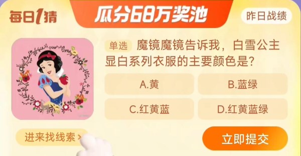 每日一猜11月2日答案是C,今天大赢家的问题是魔境魔境告诉我白雪公主显白系列衣服的主要颜色是,点击找线索往下拉就可以获得答案,具体内容一起来看看大赢家11.2答案最新,希望能够给你带来帮助。