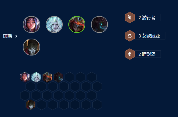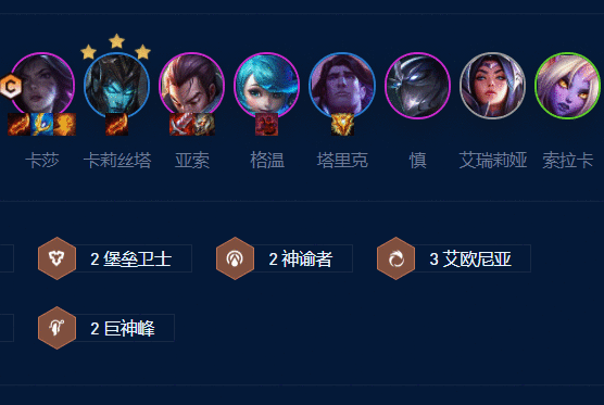3、前期尽量用强势棋子与羁绊打工,保证打工棋子2星,进而稳定血量健康。