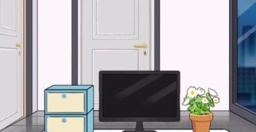 4、来到办公室,出现选项时打开桌上第二个抽屉,筷子放在盒饭上,把盒饭给窗外的人