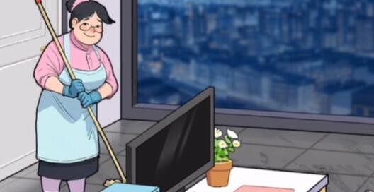 5、保洁阿姨出现,墙上的时钟给阿姨,点击下班