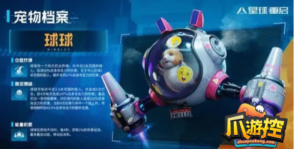 3、球球:由球状物体和仓鼠组成,通过向指定方向丢出炸弹进行攻击,范围是周围四米。