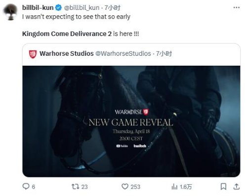 今日(4月12日),《天国:拯救》开发商Warhorse Studios宣布计划推出其下一款游戏,正式公布的日期为北京时间的4月19日凌晨2点。