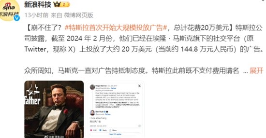 特斯拉首次开始大规模投放广告 总计花费20万美元
