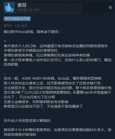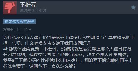 给出积极评价的玩家则称赞游戏战斗打击感十足,美术风格出色,期待后续更新。
