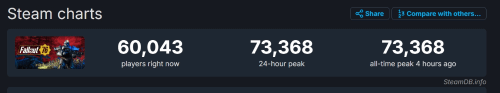 《辐射 76》在首次发布多年后,打破了自己在 Steam 上的同时在线玩家纪录。SteamDB显示,本作在昨晚玩家数达到了73368名,为历史最高。