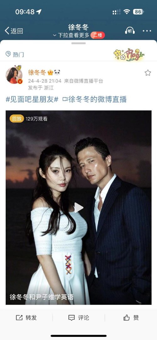 近日,徐冬冬在微博开启直播,“我学英语,他教我英语。公开课。谁是我的同班同学请举手?”