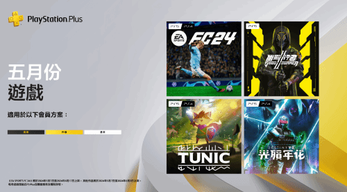 日前,PlayStation Plus五月份会免游戏正式公布,《EA Sports FC 24》《Tunic》《幽灵行者2》以及《命运2:光陨之秋》DLC将从5月7日起开领。