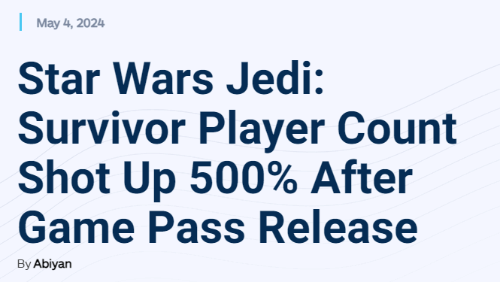 据tech4gamers报道,《星球大战绝地:幸存者》于4月26日正式加入了Xbox Game Pass和EA Play订阅服务,这一决定显然得到了回报,因为其玩家人数得到大幅提高。