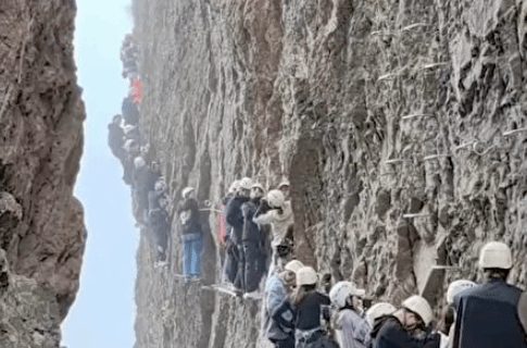 5月4日,网传雁荡山飞拉达景区游客玩攀岩,因游客过多,大量游客被卡半山腰一个多小时不得动弹。