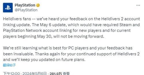 在多日的抵制之后,索尼对《地狱潜者2》强绑PSN的态度终于软化,于今日宣布他们撤回了这一决定。