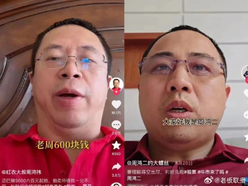 老板联播消息,近日在短视频平台上出现了雷军和周鸿祎的模仿者,昵称分别是“雷民”和“周鸿二的大螺丝”。