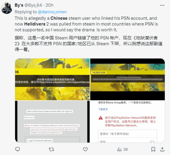 之前,索尼曾计划让《地狱潜者2》强制绑定PSN(现已取消),因为一些地区不支持PSN,导致177个国家和地区的玩家无法购买激活。不少国外玩家也都认为,中国的玩家也不能玩了,但实际上这是谣传而已。