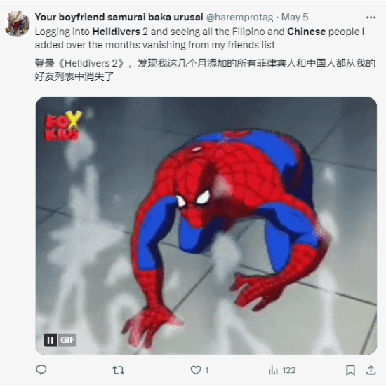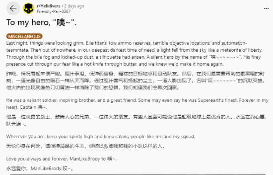 国外《地狱潜者2》玩家缅怀中国玩家:你是我的英雄